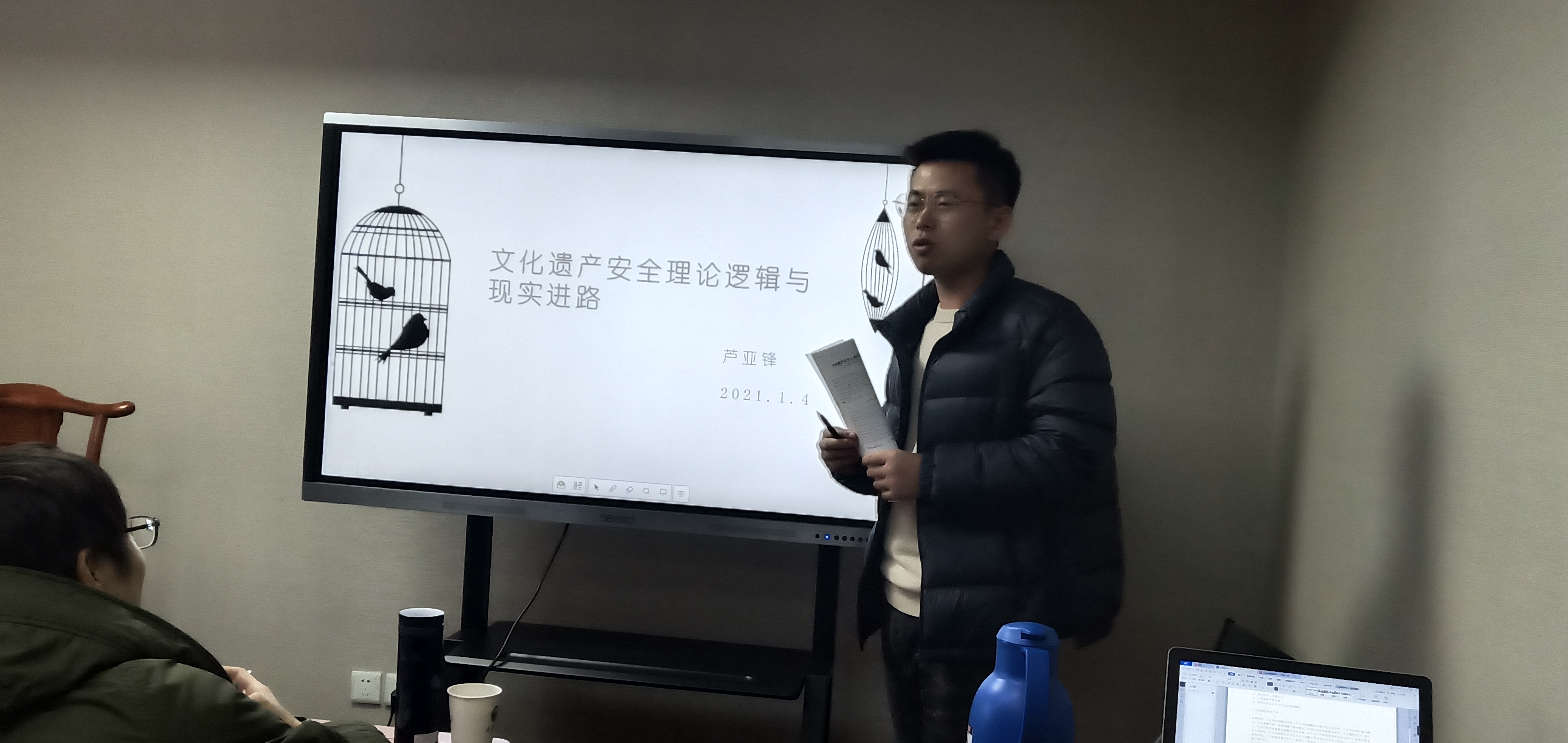 随后,19级硕士生芦亚锋围绕文化遗产安全问题展开论述,对我国文化遗产安全的理论逻辑和现实路径进行阐释。文章从文化遗产安全这一概念的内涵入手,揭示出文化遗产安全问题是在社会现代化和经济全球化内外因双重作用下的结果,进而提出保护文化遗产安全的理论逻辑与现实进路。